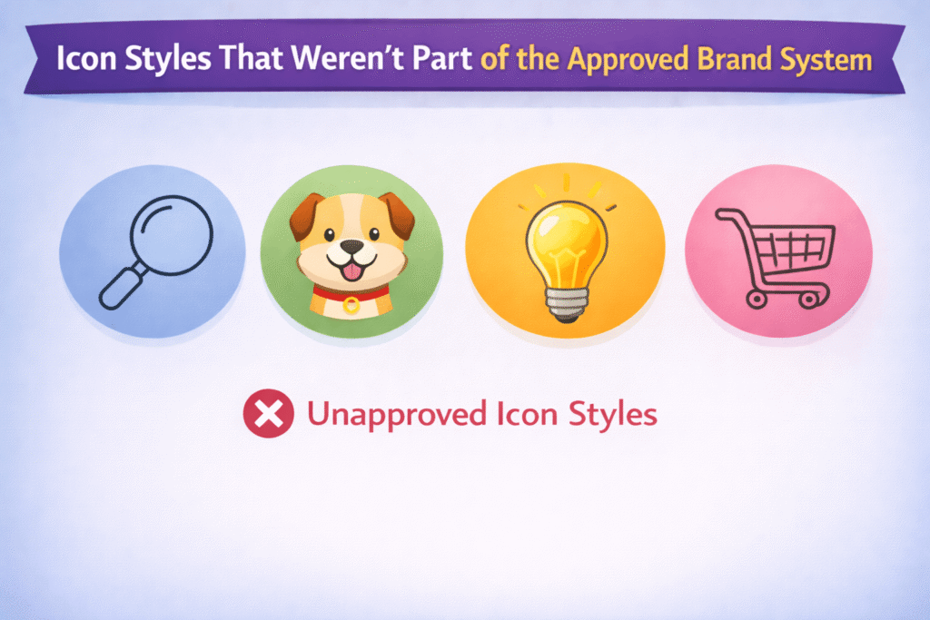 - Icon styles that weren’t part of the approved brand system
