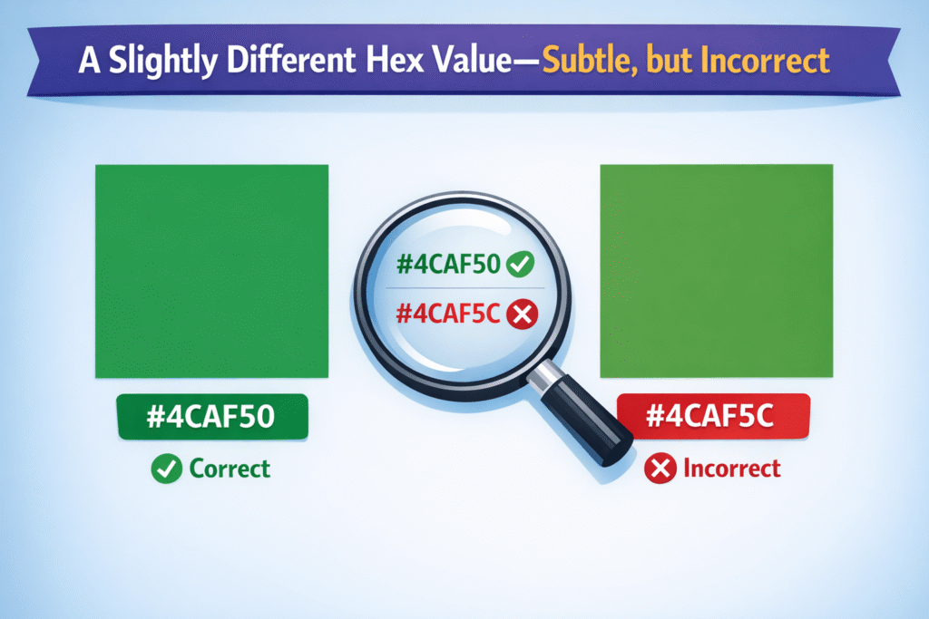 - A slightly different Hex value—subtle, but incorrect